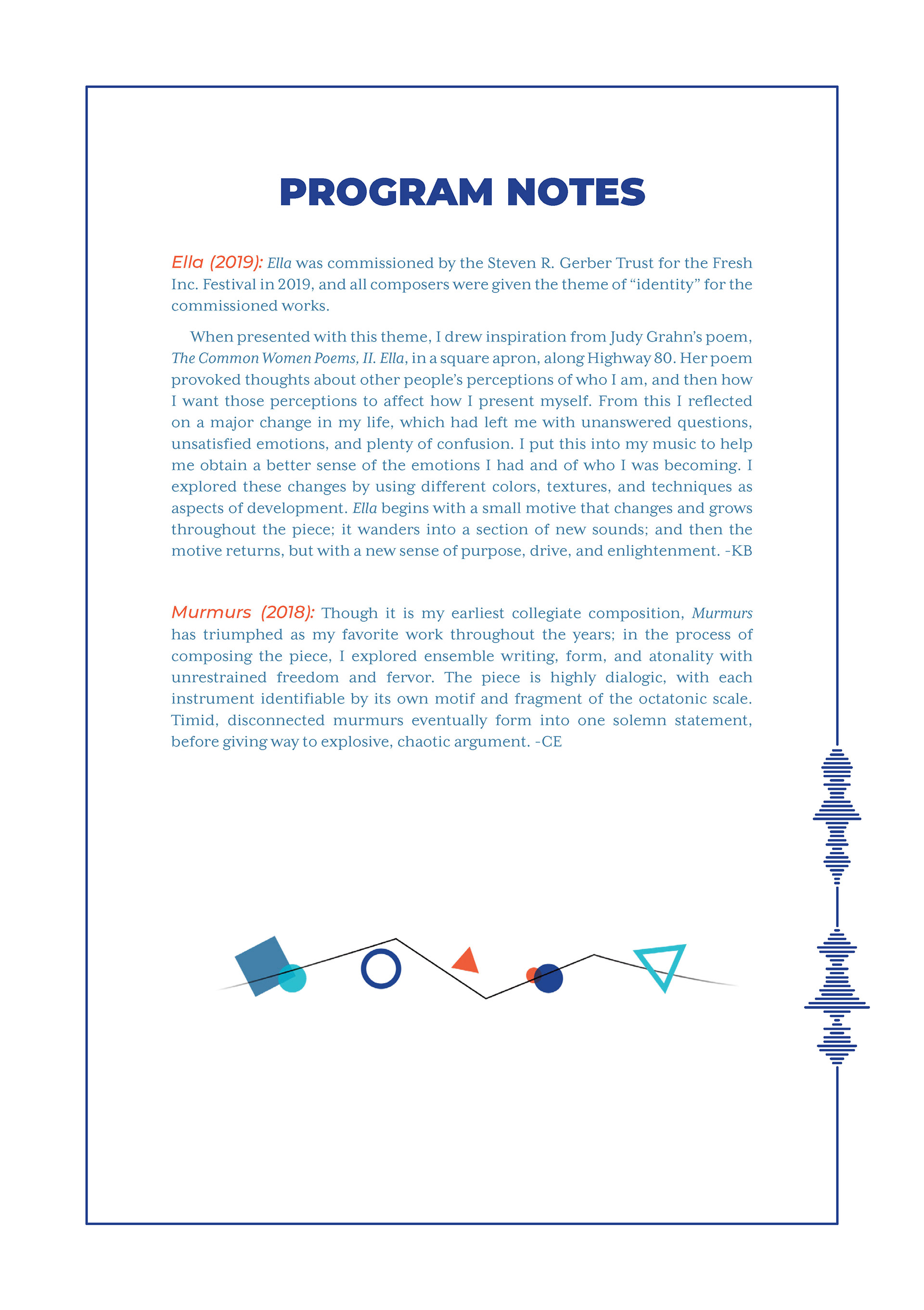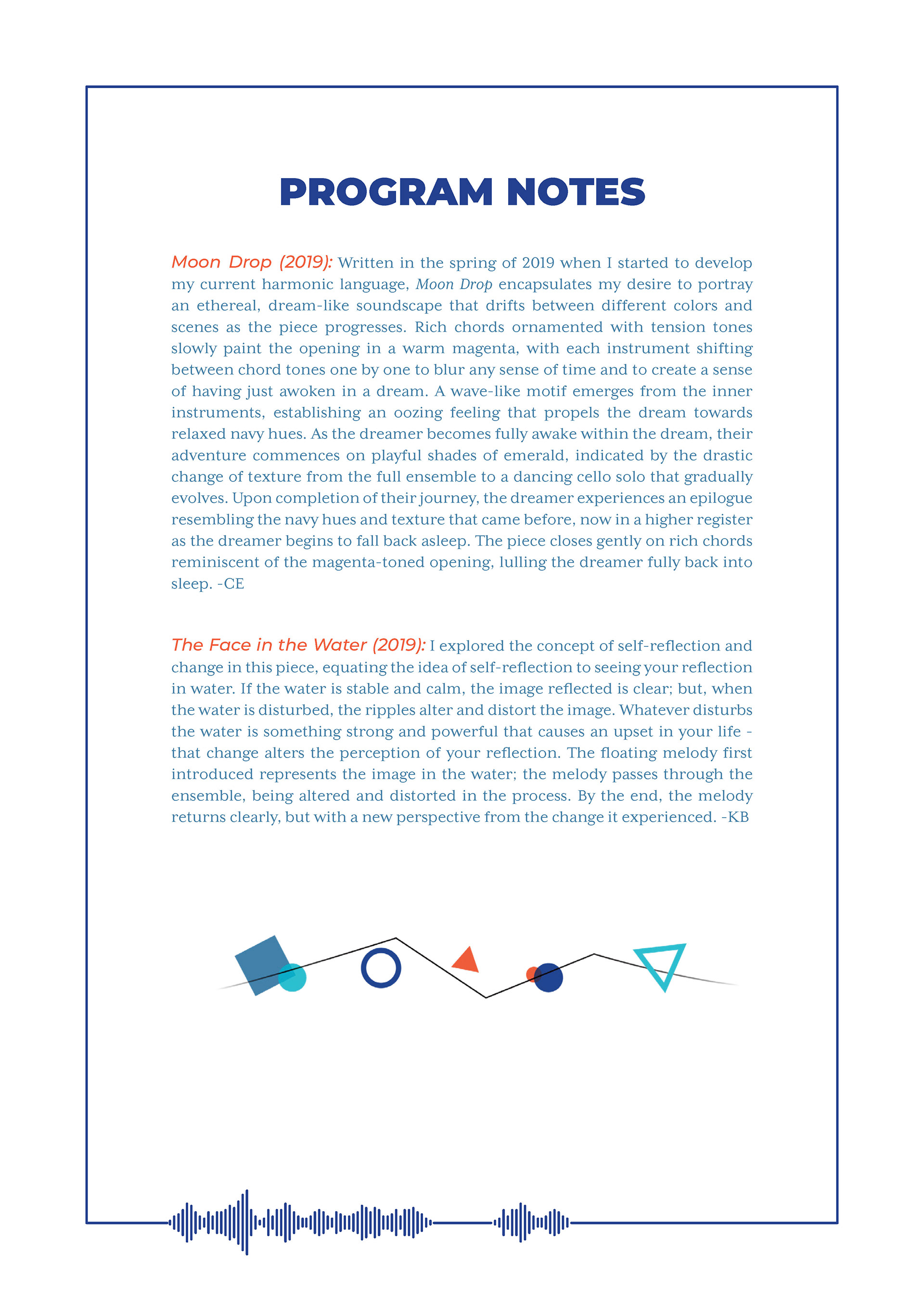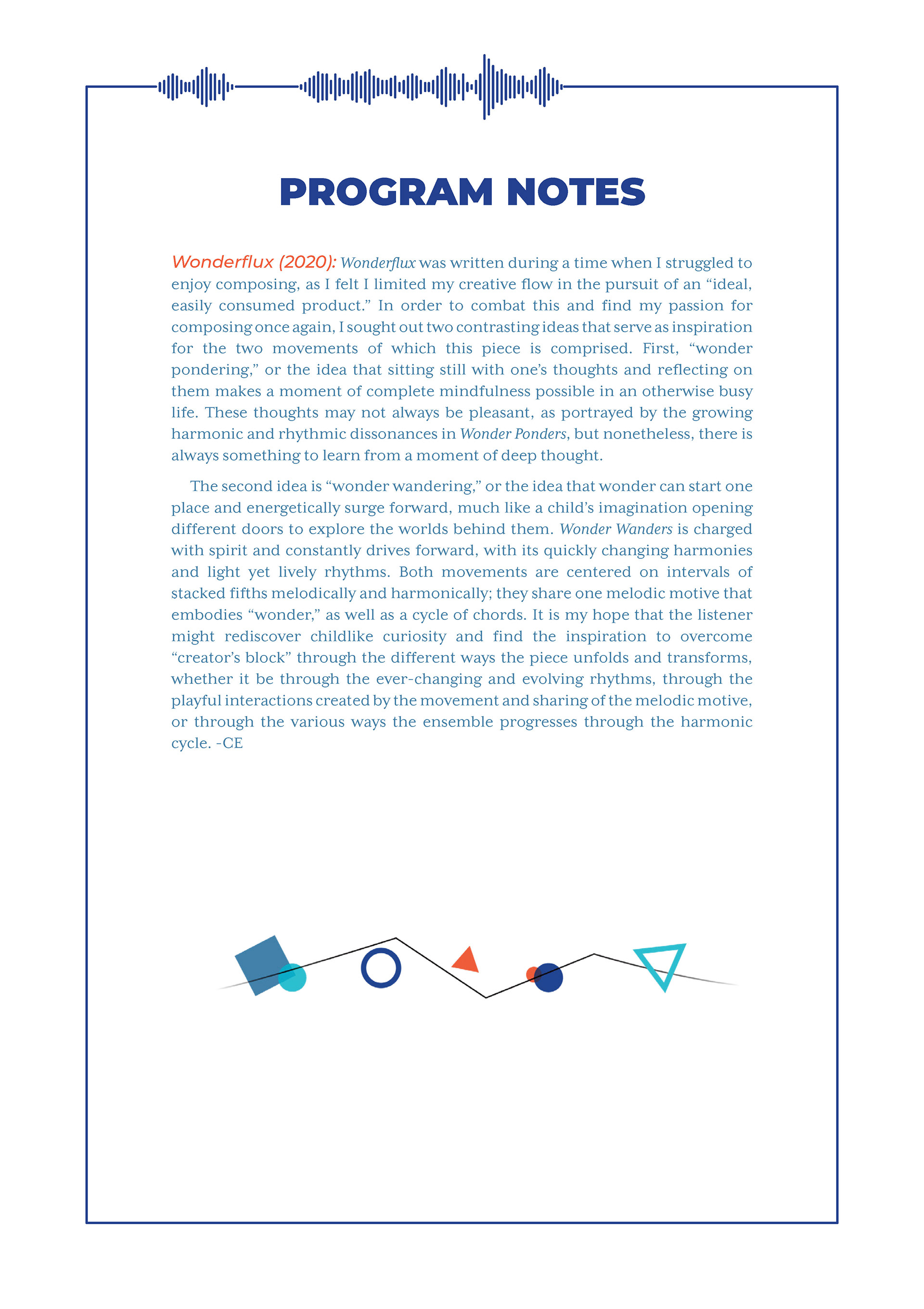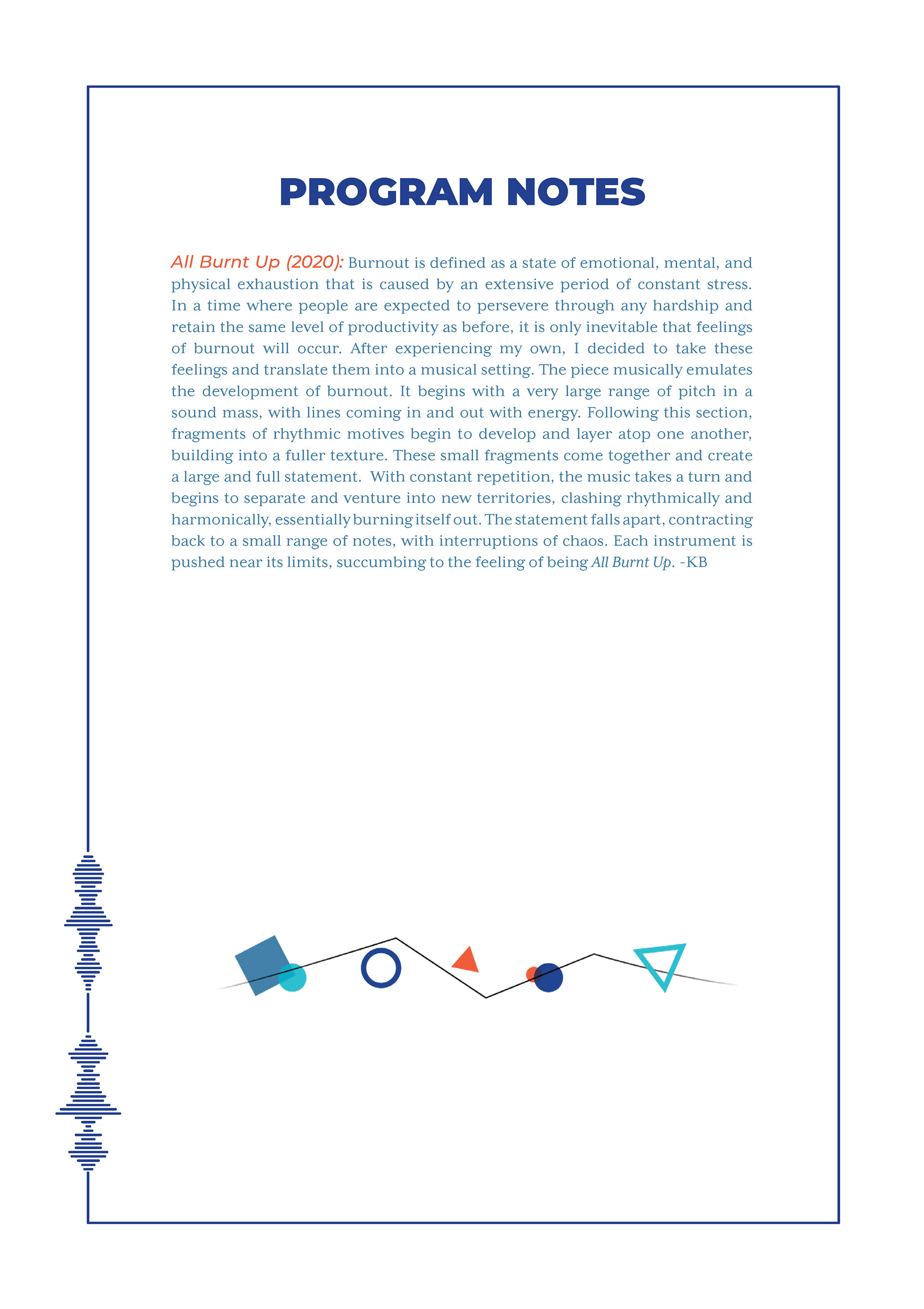 The program for Transistors in a Daze, a contemporary orchestra recital by CJ Escobar and Kathryn Blake at UMBC, April 16, 2021.